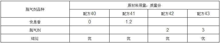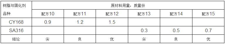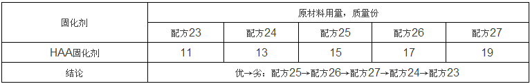 填料參加量對木紋清晰度的影響見表6,不同品牌聚酯樹脂對木紋清晰度的影響見表7,羥烷基酰胺HAA固化劑對木紋清晰度的影響見8。