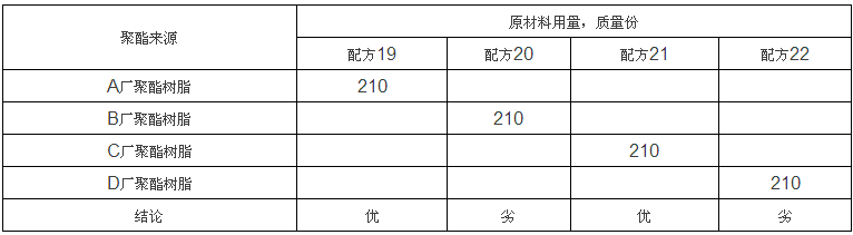表7 不同廠家聚酯樹脂對木紋清晰度的影響