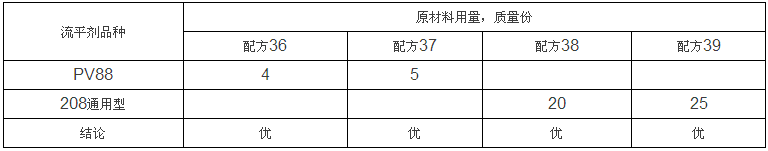 蠟粉對木紋清晰度的影響見表9,填料種類對木紋清晰度的影響見表10,流平劑對紋清晰度的影響見11,脫氣劑對木紋清晰度的影響見表12,鈦白粉填加量對木紋清晰度的影響見表13。