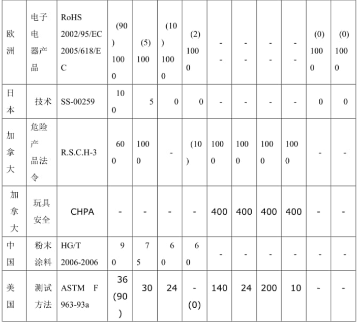 有人稱它們為貿易壁壘或環保壁壘,但只要標準的要求是內外一致的,那么就不是貿易歧視,也無所謂抬高進口門檻,而確實是為保護其本國人民利益采取的正當行動。這些法規、法令所規定的毒物,有兩大類:無機毒物和有機毒物。無機毒物是表中所列的重金屬和非金屬無機物,即所謂的“八大有害元素”,主要來源是填料和無機顏料。有機毒物除了表中所列有機溴化物外,還包括未列入的有機氟化物、有機氯化物、有機錫化物、偶氮化合物、酚類、苯類、多環芳經及其它有毒有機物,以及最近鬧得沸沸揚揚的所謂塑化劑(即國內稱增塑劑)的鄰苯二甲酸酯,主要來源是樹脂、固化劑、其它助劑和有機顏料。不過這只是大致的來源劃分,有的時候也有交義存在的可能性。