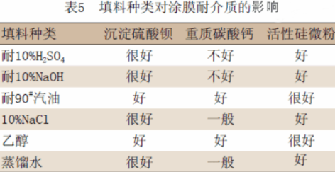 2.3.1填料的品種對涂膜耐介質性能影響