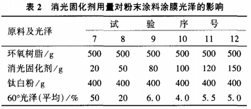使用消光固化劑的目的主要是為了調節涂膜的光澤,因此就容易產生這樣一個誤區:只要調節消光固化劑的用量就可以得到不同光澤的涂膜。現以環氧消光固化劑來做試驗加以說明(見表2)。