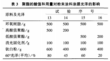 就粉末涂料本身而言,原材料的選擇也直接影響涂膜的各種性能,包括影響涂膜的光澤。所以通常在生產粉末涂料之前一定要對選用什么樣的聚酯生產什么性能的涂料做到有的放矢。試驗結果如表3所列。