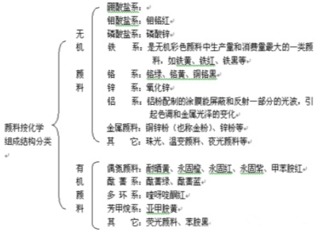 粉末涂料用的顏料一般能夠依照出產辦法、組成結構、功用等不同方式進行分類: