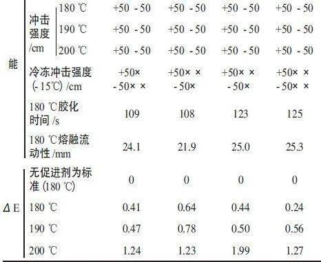 表2 試驗效果說明,不管是以加促進劑的180 ℃烘烤固化的樣板為標準,還是以沒有加促進劑的180℃烘烤固化的樣板為標準,促進劑-3 的色差最小。