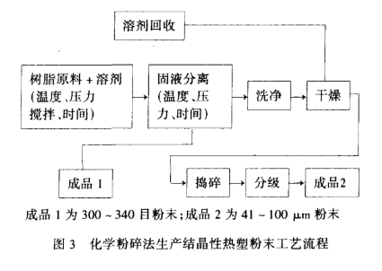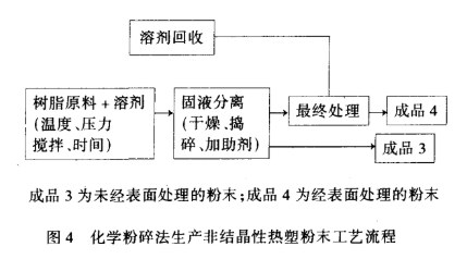 圖4為生產非結晶性塑料粉末涂料工藝流程,適用于PES、PI、PEI。