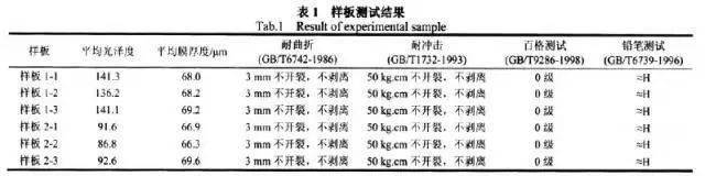 另取相同份量的底粉與鋁粉干混,待其均勻混合后噴板,固化得樣板2,標記為樣板2-l、2-2、2-3。