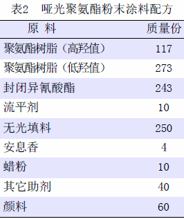 一些廠家啞光聚氨酯粉末涂料的配方見表2。