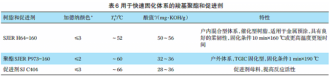 國內現已開發出用于金屬板預涂和卷材涂裝的羥基聚酯和促進劑,見表6。
