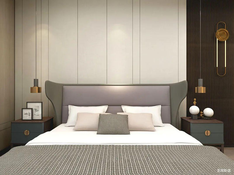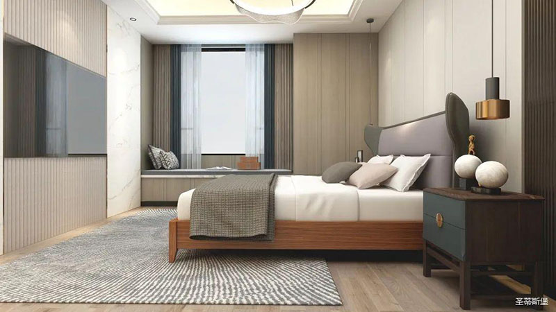 臥室精簡有致,從質(zhì)感出發(fā),打造由內(nèi)而外的優(yōu)雅奢華感。背景墻、地板、地毯均擁有較強的肌理感,在加上金屬軟裝飾物調(diào)和,讓空間在低調(diào)內(nèi)斂的基礎上又不失時尚的高級感,飄窗進階為溫馨的一角,閑暇時,則可倚窗而坐,品一杯紅酒,感受生活中的愜意時光。