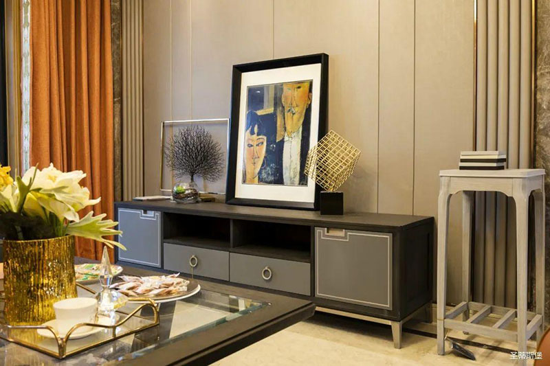 極具時尚設計格調的透明茶幾,不僅中和了沙發的厚重感,還令空間更為清透明亮!