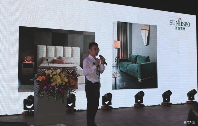 華燈璀璨的開場儀式,點燃了現(xiàn)場如火如荼的氣氛。必一通集團營銷總經(jīng)理陳玉偉先生對晚會進行了主題發(fā)言,他對2020年的營銷工作進行了總結(jié),并著重從營銷工作部署、重點項目開展、產(chǎn)品整合、拎包幫扶、渠道運營和移動+定制整裝優(yōu)勢等方面對2021年的營銷工作做了全面的統(tǒng)籌規(guī)劃。同時,他還講解了“美國夢凱莎床墊”新品的產(chǎn)品工藝、市場優(yōu)勢、產(chǎn)品定位,使經(jīng)銷商對我們的新產(chǎn)品擁有更深入的認(rèn)識和了解。