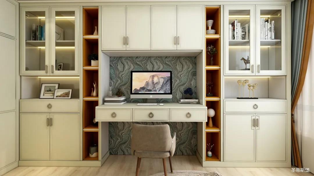 象牙白色調讓入室空間散發著溫柔的氣息,定制玄關柜上輕奢金屬線條的加持,洋溢著一種不加雕飾的美感,色澤素雅,紋理精致,于內斂沉靜中,感受入戶空間的氣質。