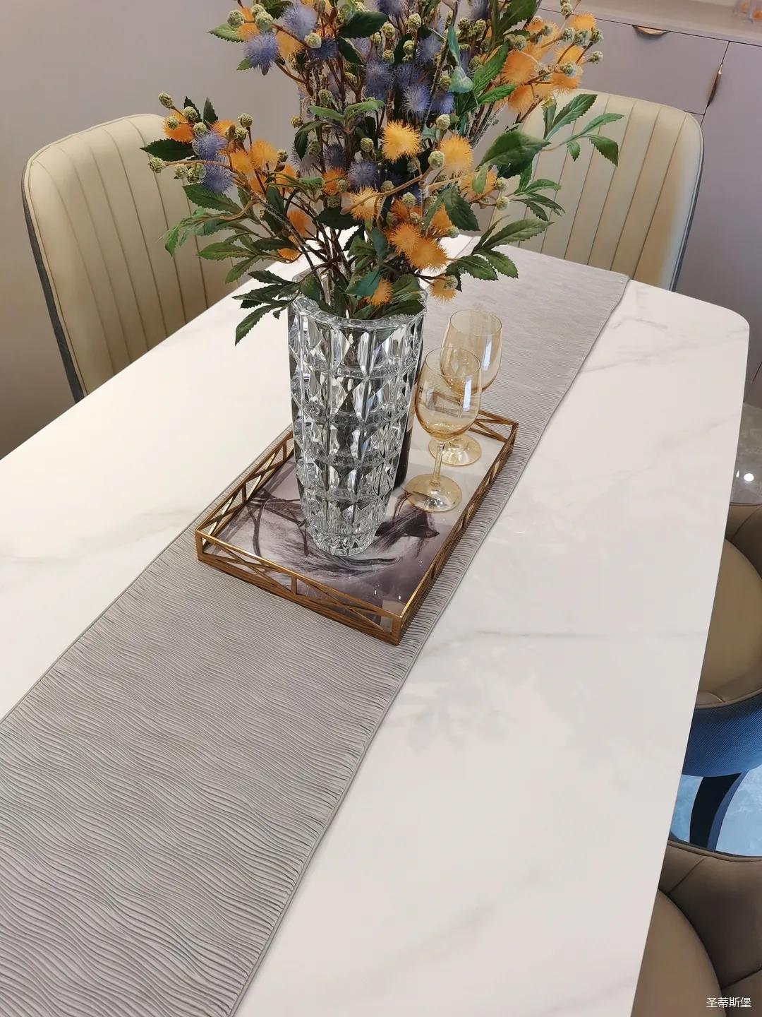 餐桌上的綠植點綴,隨意擺放的精致杯盞,將自由隨性的用餐空間就此拉開。