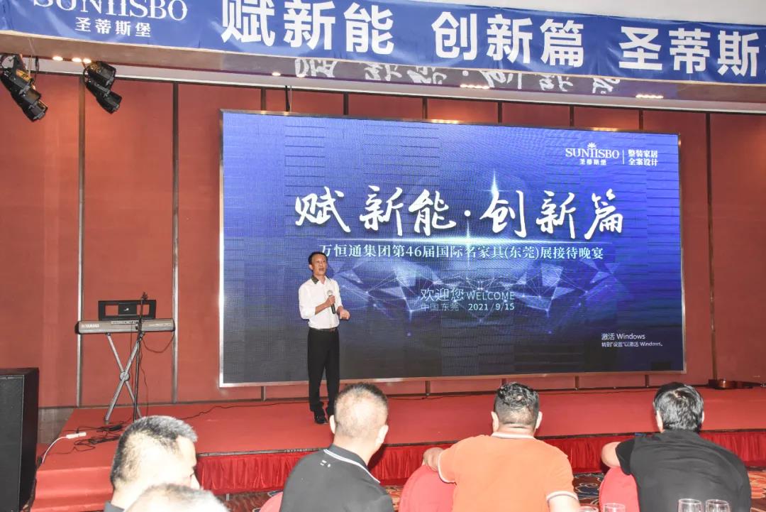 9月15日晚6時許,以“創(chuàng)新能,賦新篇”為主題的必一通集團(tuán)第46屆國際家具展接待晚宴在虎門豐泰花園酒店舉行。