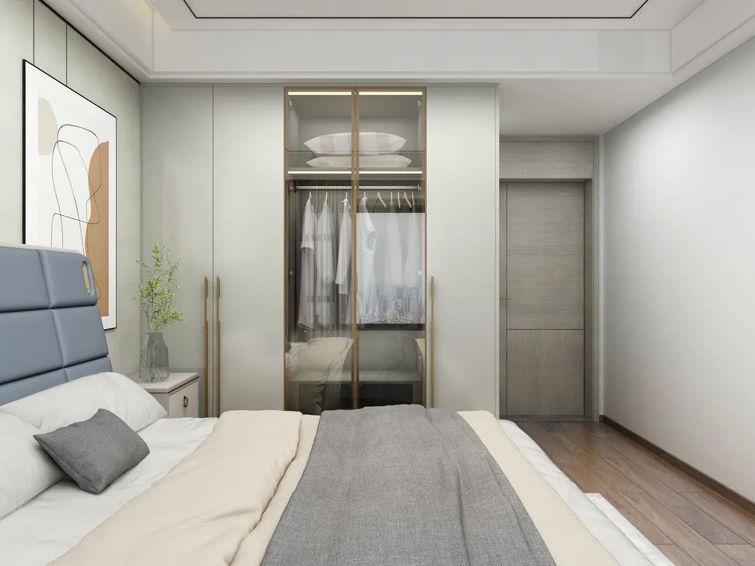 次臥用淺灰奠定空間時尚且沉穩的格調